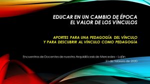 Educar en un cambio de época. El valor de los vínculos (Presentación en PPT) Material utilizado en el Encuentro con los docentes de la Arquidiócesis el día viernes 21 de febrero de 2020 en la ciudad de Mercedes. Charla